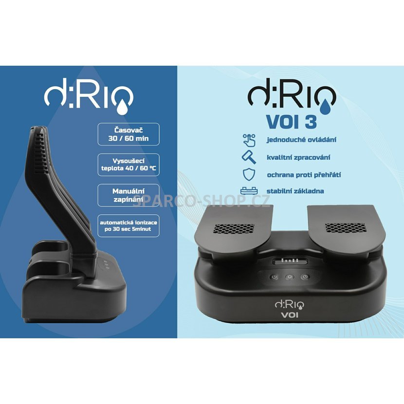 d:Rio VOI 3 se pro Vás může stát nenahraditelným pomocníkem. S tímto moderním přístrojem můžete sušit obuv, rukavice, helmu a mnoho dalších věcí.